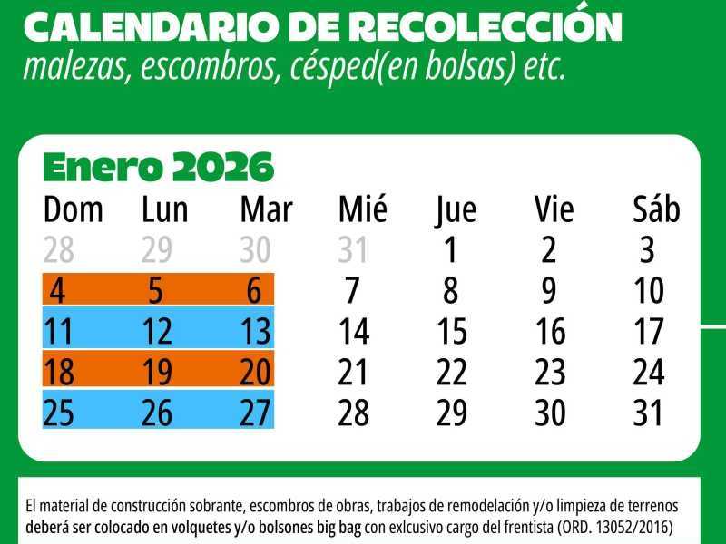 La necesidad de tener un pueblo limpio y ordenado debe ser un compromiso de todos los vecinos. El calendario es claro y preciso y se recomienda respetarlo para el bien común.