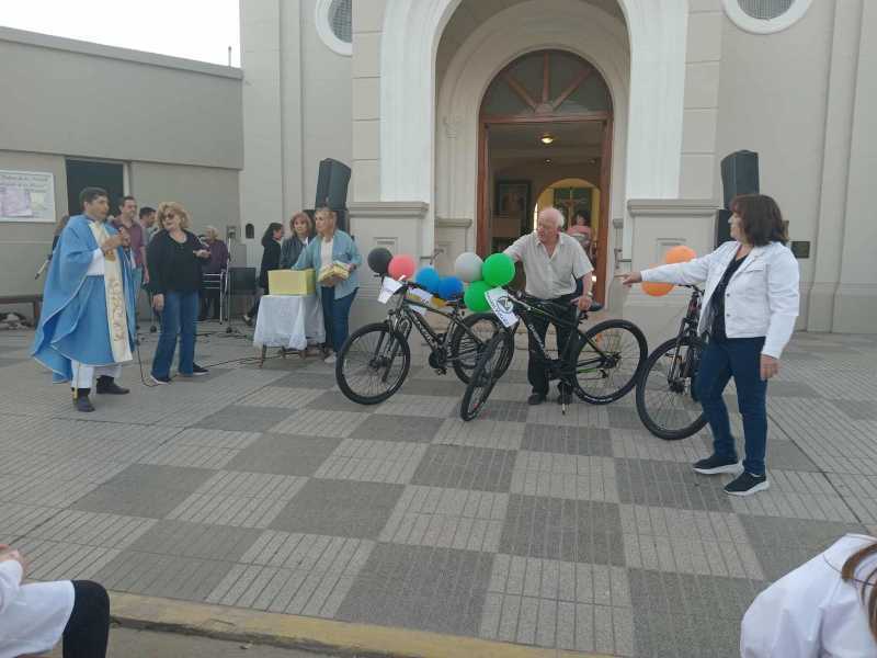Finalmente hubo torta y chocolate caliente como cierre de esta linda y emotiva fiesta. Se sortearon cuatro bicicletas en el tradicional juego del “Vidribicicletazo” y se sorteó un premio de $50.000 de la tómbola parroquial, cuya ganadora fue Alicia Ipólitti.